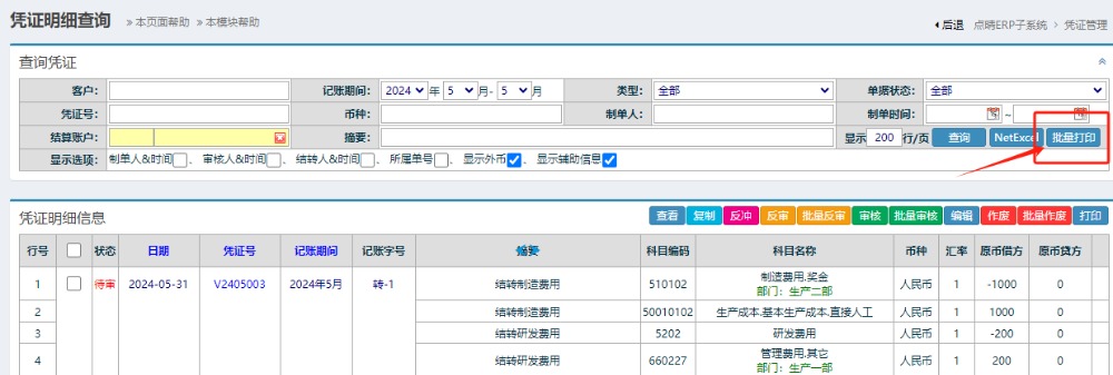 【点晴模切ERP】财务管理模块中如何批量打印凭证?