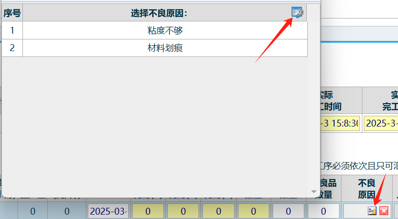 ![]() 操作步骤:生产管理-生产进度及汇报-生产进度汇报,如下图所示: 进入界面后,点击不良原因对应图标,弹出窗口,在弹窗界面点击设置图标,如下图所示: 填写好对应内容,按回车键盘进行排列,全部设置后,点击保存,如下图: 点晴模切ERP更多信息:http://moqie.clicksun.cn,联系电话:4001861886 该文章在 2025/3/3 15:14:51 编辑过 |