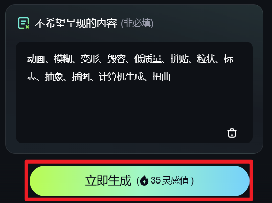描述完成后,填入不希望呈现的内容,如变形、扭曲、毁容等,