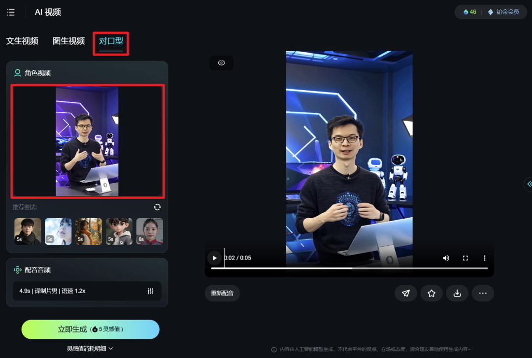先生成一段动态视频,再让这段动态视频完成对口型操作,