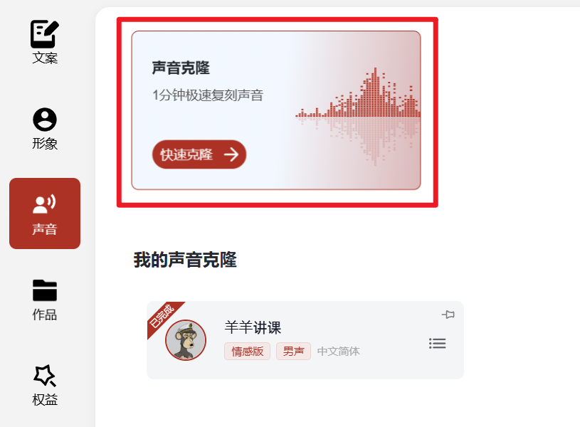 接着,在声音克隆处克隆自己的声音;