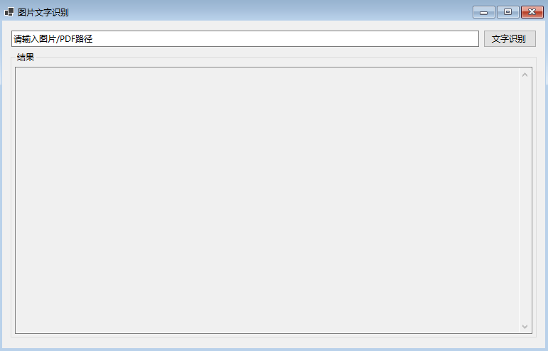 第一个文本框用于输入图片路径,第二个文本框用于显示识别结果,按钮则用于触发 OCR 操作。