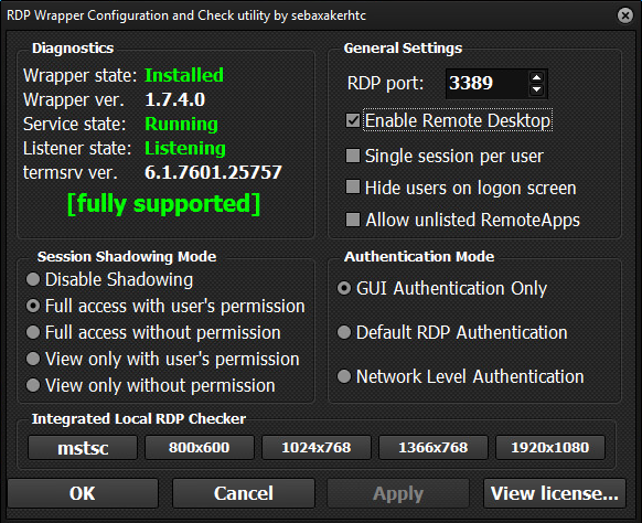 RDP Wrapper Library是一款专业的Windows系统远程桌面的软件工具,软件支持远程桌面,允许多个用户同时登录设置。非常方便快捷,软件界面简约,布局直观清晰。操作简单,容易上手,是一款十分实用的工具。