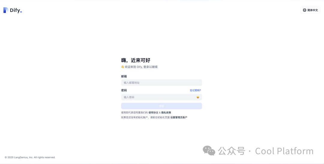 初始化完成后将跳转至 Dify 主页面:
