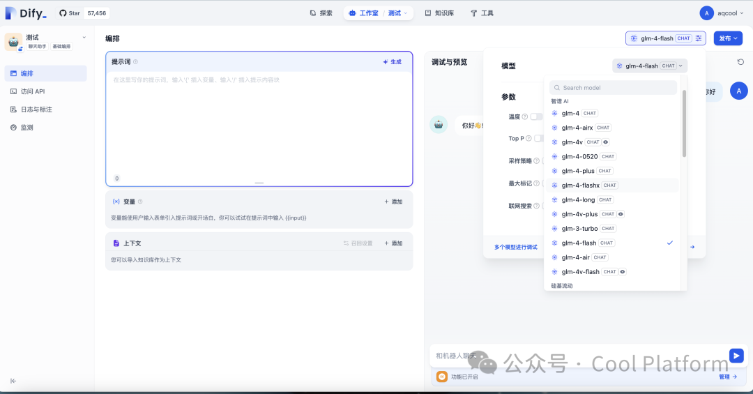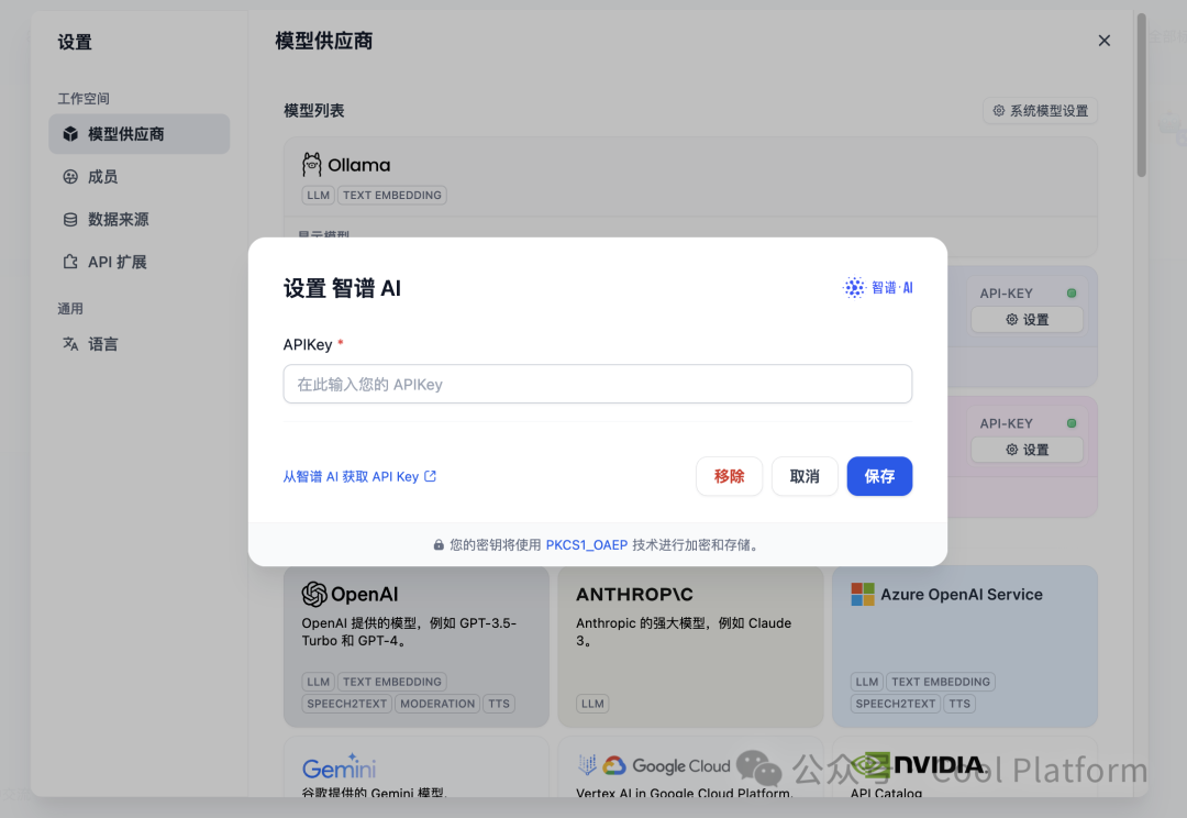 在完成注册并获取APIKey 后在dify 中完成配置