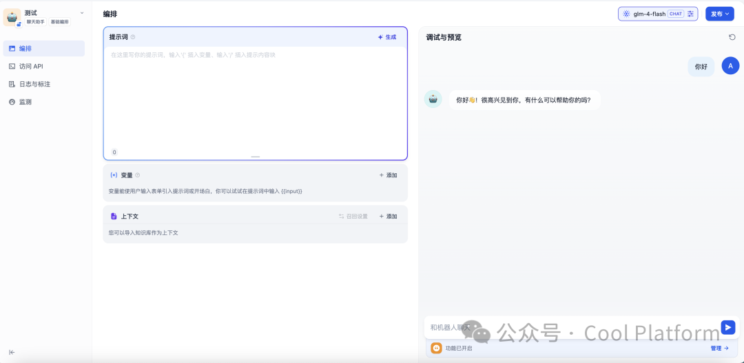 这里推荐使用质朴的glm4 flash,该模型可免费通过API 调用,更有免费视觉模型和生图模型可免费调用,强烈推荐。质谱AI开放平台(https://bigmodel.cn)