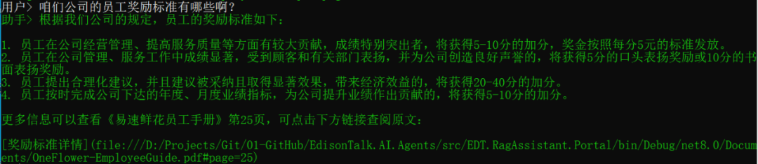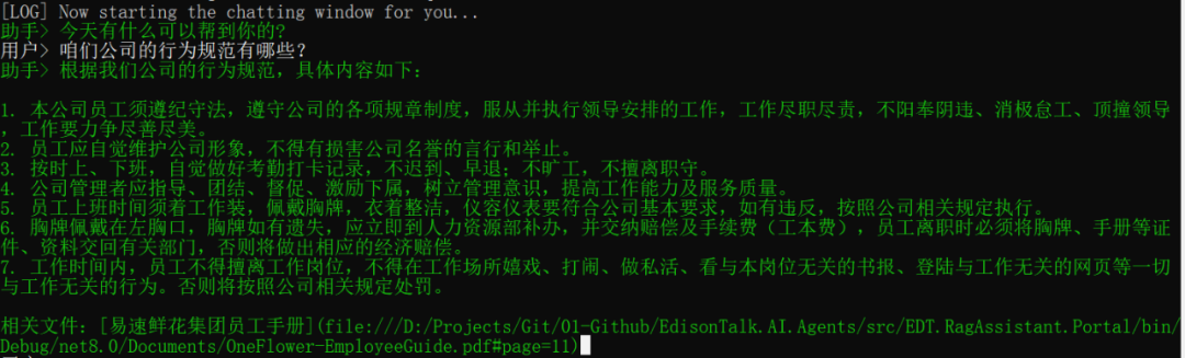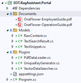 大家好,我是Edison。 之前我们了解 Microsoft.Extensions.AI 和 Microsoft.Extensions.VectorData 两个重要的AI应用核心库。基于对他们的了解,今天我们就可以来实战一个RAG问答应用,把之前所学的串起来。 前提知识点:向量存储、词嵌入、向量搜索、提示词工程、函数调用。 案例需求背景假设我们在一家名叫“易速鲜花”的电商网站工作,顾名思义,这是一家从事鲜花电商的网站。我们有一些运营手册、员工手册之类的文档(例如下图所示的一些pdf文件),想要将其导入知识库并创建一个AI机器人,负责日常为员工解答一些政策性的问题。 例如,员工想要了解奖励标准、行为准备、报销流程等等,都可以通过和这个AI机器人对话就可以快速了解最新的政策和流程。 在接下来的Demo中,我们会使用以下工具: (1) LLM 采用 Qwen2.5-7B-Instruct,可以使用SiliconFlow平台提供的API,你也可以改为你喜欢的其他模型如DeepSeek,但是建议不要用大炮打蚊子哈。 注册地址:点此注册 (2) Qdrant 作为 向量数据库,可以使用Docker在你本地运行一个: docker run -p 6333:6333 -p 6334:6334 \ -v $(pwd)/qdrant_storage:/qdrant/storage \ qdrant/qdrant (3) Ollama 运行 bge-m3 模型 作为 Emedding生成器,可以自行拉取一个在你本地运行: ollama pull bge-m3 构建你的RAG应用创建一个控制台应用程序,添加一些必要的文件目录 和 配置文件(json),最终的解决方案如下图所示。