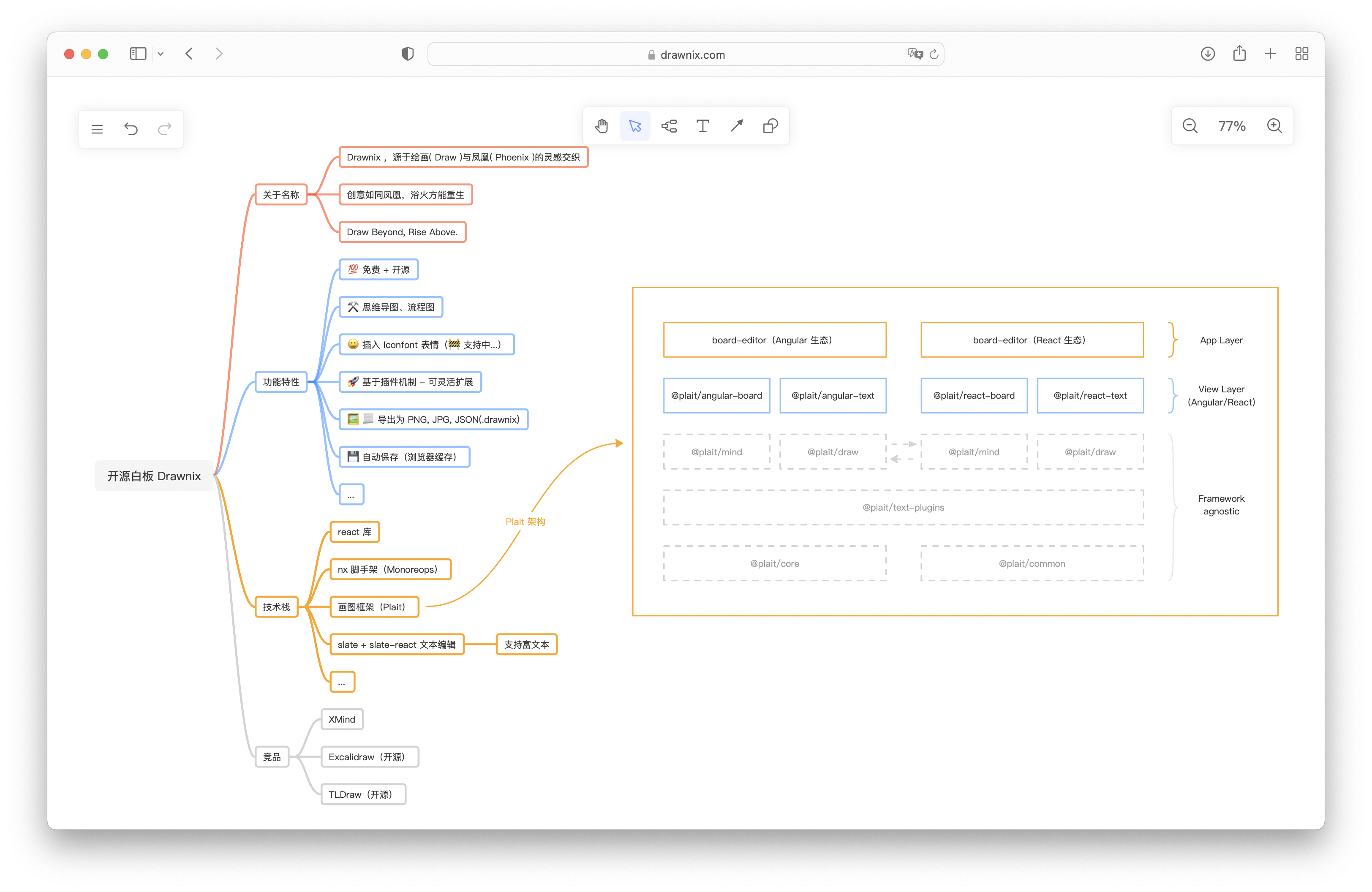 ​在线白板工具 Drawnix —— 名字源于绘画(Draw)与凤凰(Phoenix)的灵感交织。