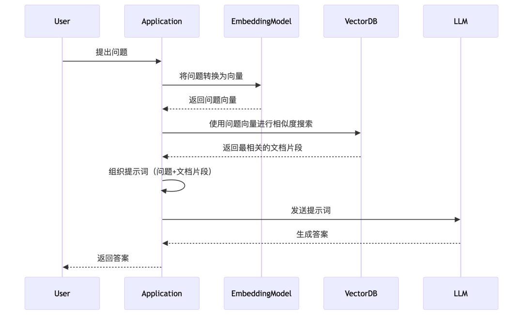 在知识库中导入文档后,系统会通过分块处理将文档切割为语义连贯的片段(Chunk)。这些文本块会经过嵌入模型(Embedding Model)转化为高维向量,存储至向量数据库(Vector DB)。当用户发起问答请求时,系统通过向量相似度检索匹配的文本片段,并将问题与相关上下文共同输入大语言模型(LLM),完成检索增强生成(Retrieval-Augmented Generation,RAG)的智能问答流程。