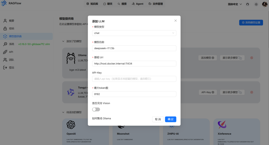 RAGFlow 添加本地模型配置示例
