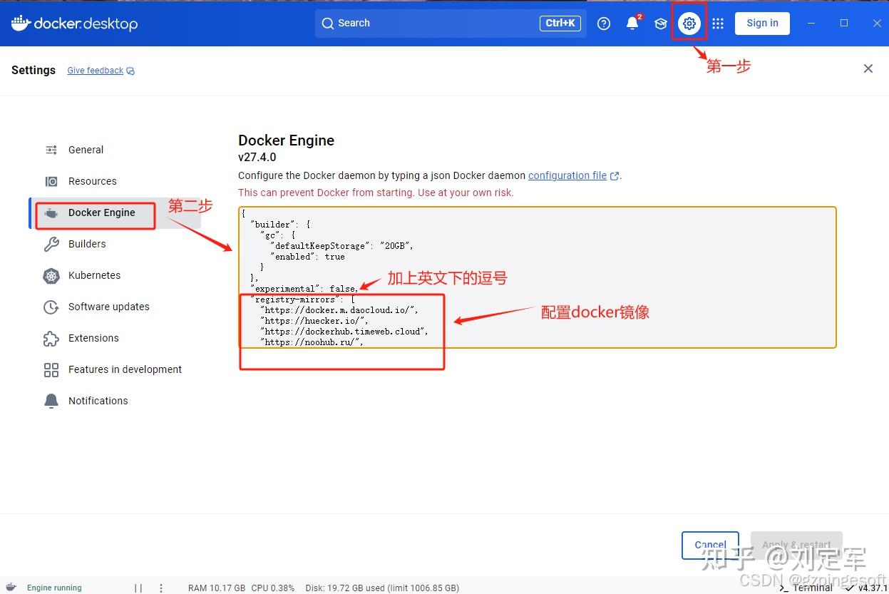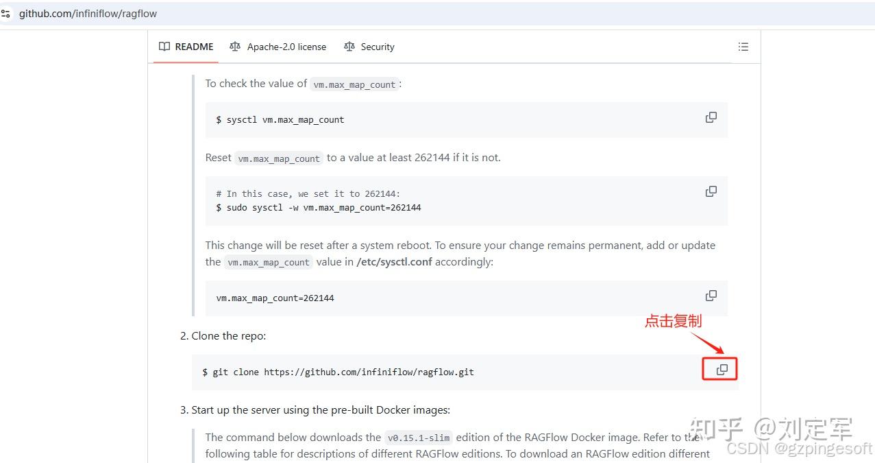 在 “experimental”: false, 后加上如下Docker镜像地址,建议直接复制 配置修改后,点击 Apply&restart 保存并重启Docker 下载RAGFlow打开Google浏览器,输入如下地址,打开RAGFlow https://github.com/infiniflow/ragflow