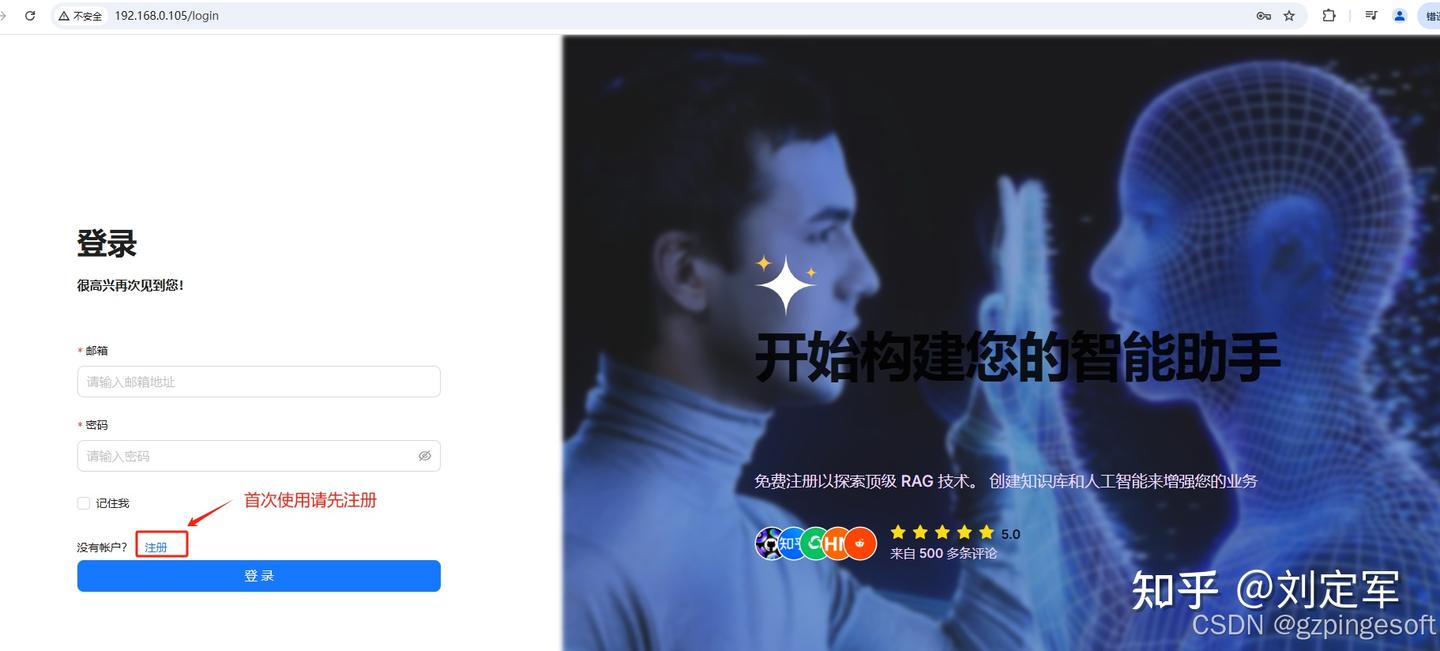 配置系统变量OLLAMA_HOST右击我的电脑,选择属性,如下图,如果没有配置OLLAMA_HOST系统变量,则按下图配置。 原因配置模型提供商需要输入IP地址,如果不配置,则连接不上。 3. 添加模型提供商打开google浏览器,输入地址: http://你的本机IP地址/login 如下图: