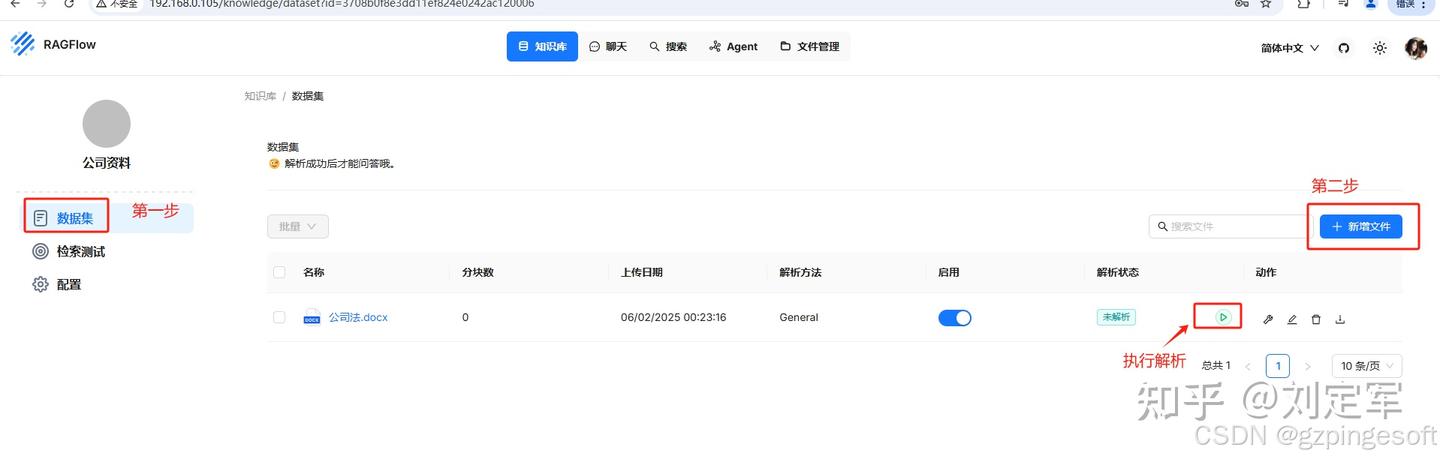 解析成功后,则可以新建聊天来对知识库进行检索。 注意 如果文件未解析成功,则不可以进行聊天。