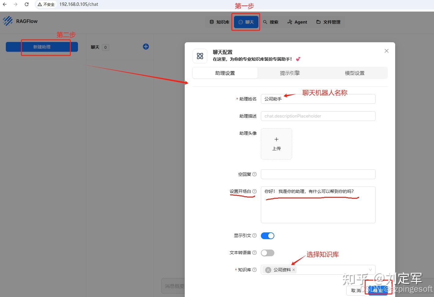 新建聊天点击聊天,新建助理,进行聊天配置,如下图所示:
