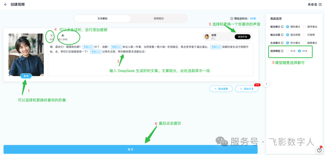 Step 2 让 飞影数字人 来一键生成视频(免费教程)