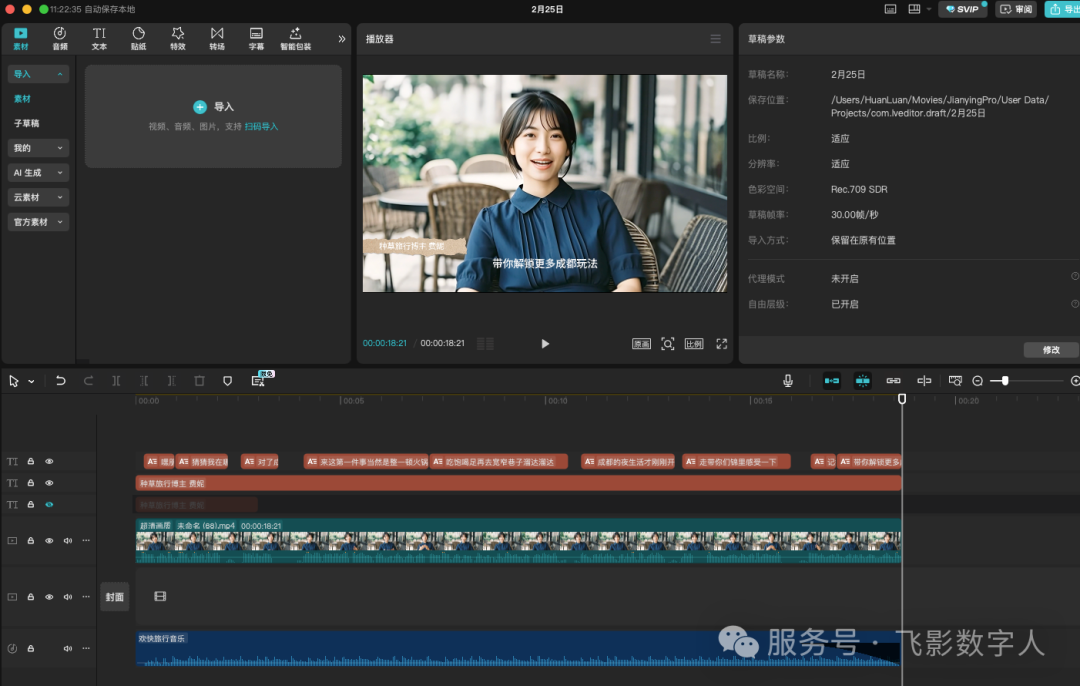 至此视频已经完成,如果需要分享至社交平台,那最后一步在剪映或其他视频编辑软件中,添加字幕和背景音乐,就完全是一个高质量的短视频了。