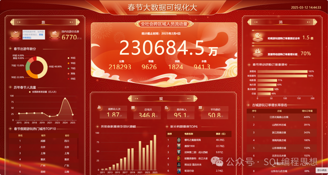 DataEase 提供了丰富、专业、美观、开箱即用的业务场景模板,覆盖制造、零售电商、银行金融、医药健康、交通物流等各行各业, 方便用户根据自身的业务需求和使用场景选择,并在优质模板的基础上轻松制作自己的仪表板或数据大屏。