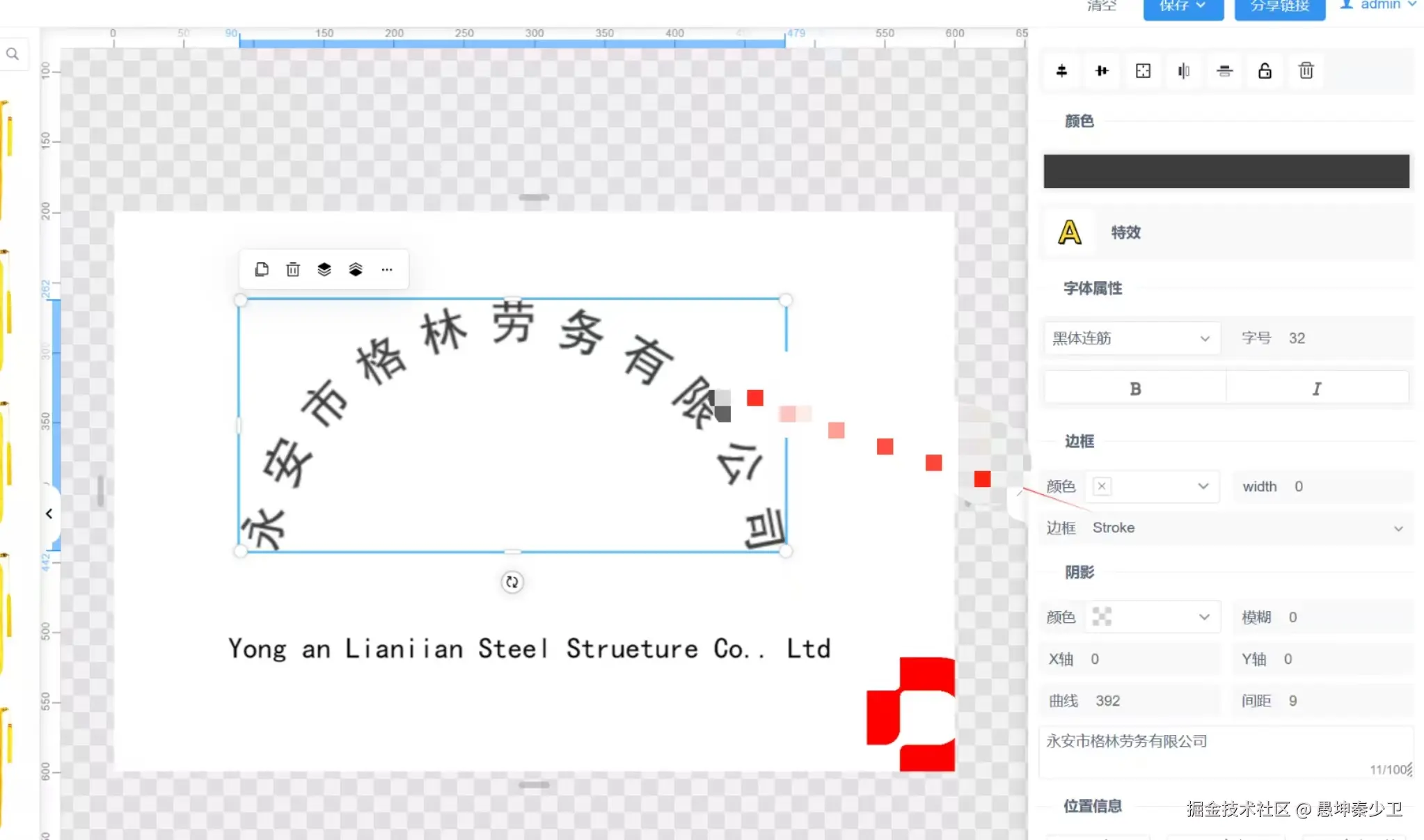 这类应用的核心功能在于自定义画布尺寸和元素排版,得益于fabric.js的原生支持,实现起来相对简单。我们主要工作是开发直观的属性编辑面板,使用户能够便捷地调整所选元素的文字和图片属性。