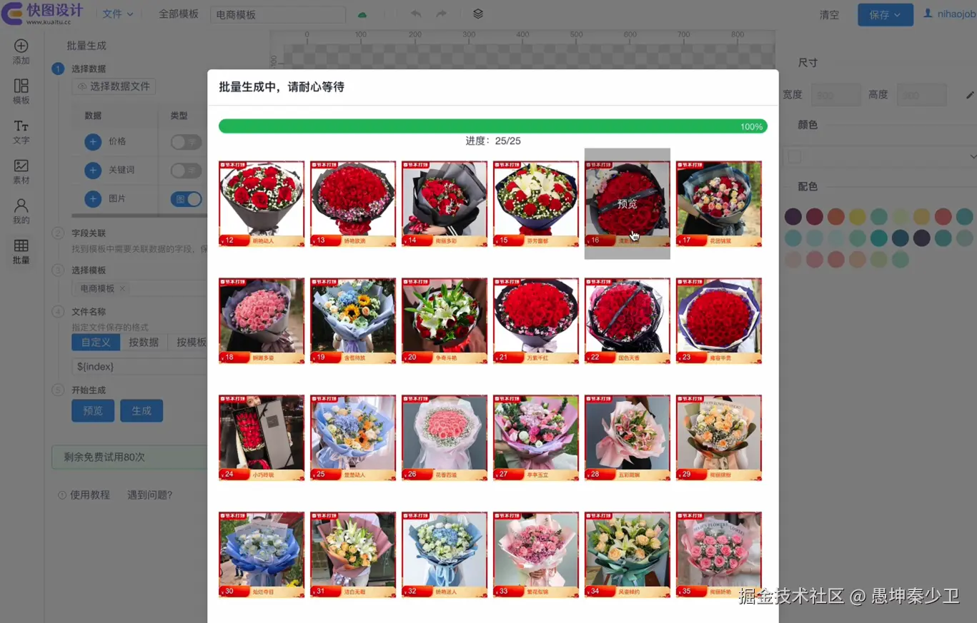 批量算是一个比较刚需的功能,比如电商的主图,很多需要根据不同产品到图片和价格来批量加边框和文字,以及节庆价格折扣等,来生成商品主图,结合图片和表格可以快速生成,减少设计师的重复工作量。