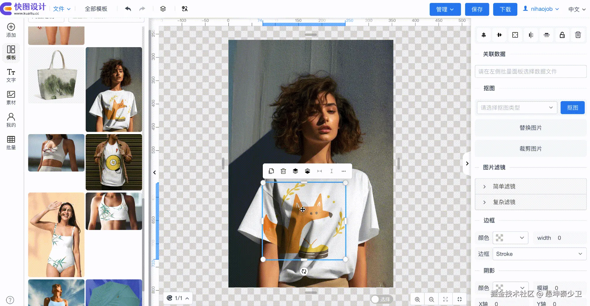 服装/商品定制是让用户在设计平台上上传图片,然后将图片贴图到对应的商品模板上,实现让用户快速预览设计效果的需求