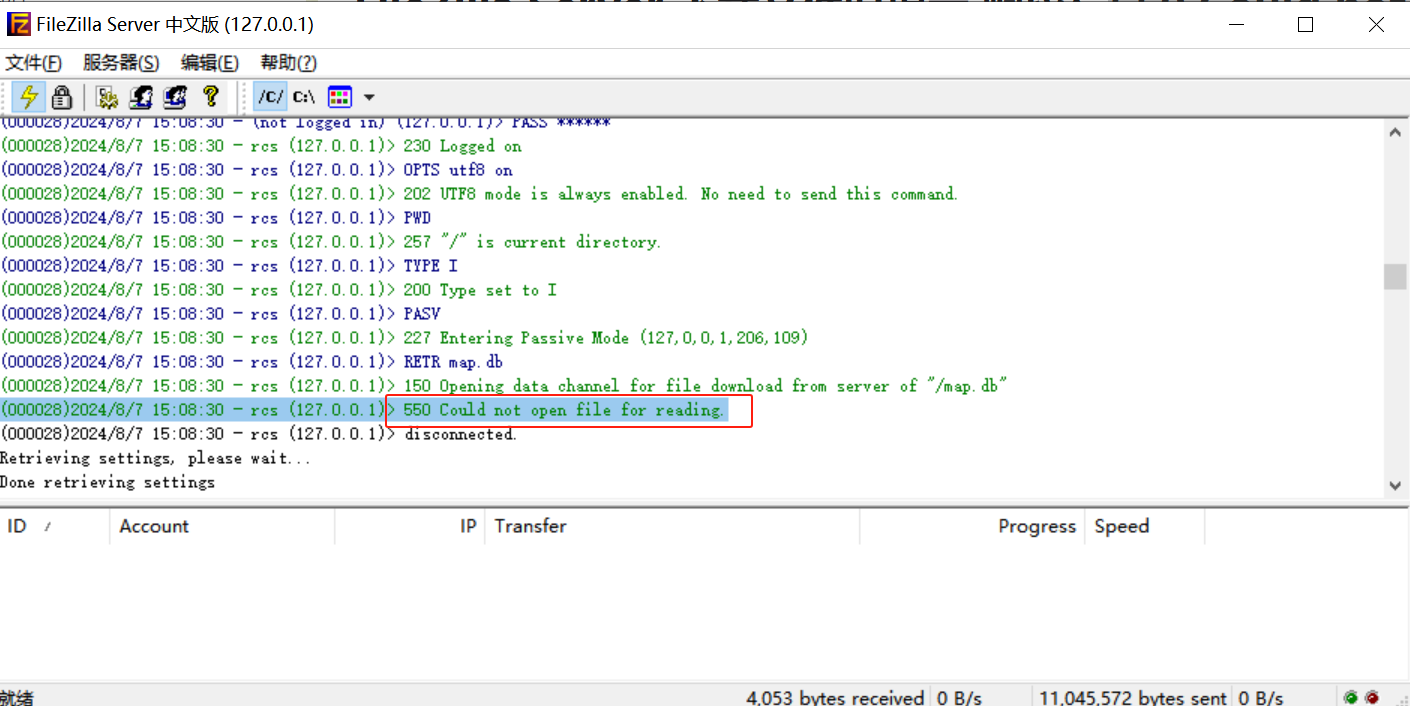 设置完成后记得启动服务。 三、客户端连接1、参数string host;//服务端url,如ftp://127.0.0.1 string username;//用户名,如root string password;//密码,如123 string remoteFilePath;//下载文件路径,如file.db string savePath;//保存文件路径,如D:\file.db 2、代码FtpWebRequest request = (FtpWebRequest)WebRequest.Create(new Uri(new Uri(host), remoteFilePath)); request.Method = WebRequestMethods.Ftp.DownloadFile; if (string.IsNullOrEmpty(username) && string.IsNullOrEmpty(password)) request.Credentials = null; else request.Credentials = new NetworkCredential(username, password); using (FtpWebResponse response = (FtpWebResponse)request.GetResponse()) using (Stream responseStream = response.GetResponseStream()) using (FileStream fileStream = new FileStream(savePath, FileMode.Create, FileAccess.ReadWrite, FileShare.ReadWrite)) { responseStream.CopyTo(fileStream); } 转自https://www.cnblogs.com/magicMaQaQ/p/18329670 该文章在 2025/3/20 9:28:26 编辑过 |