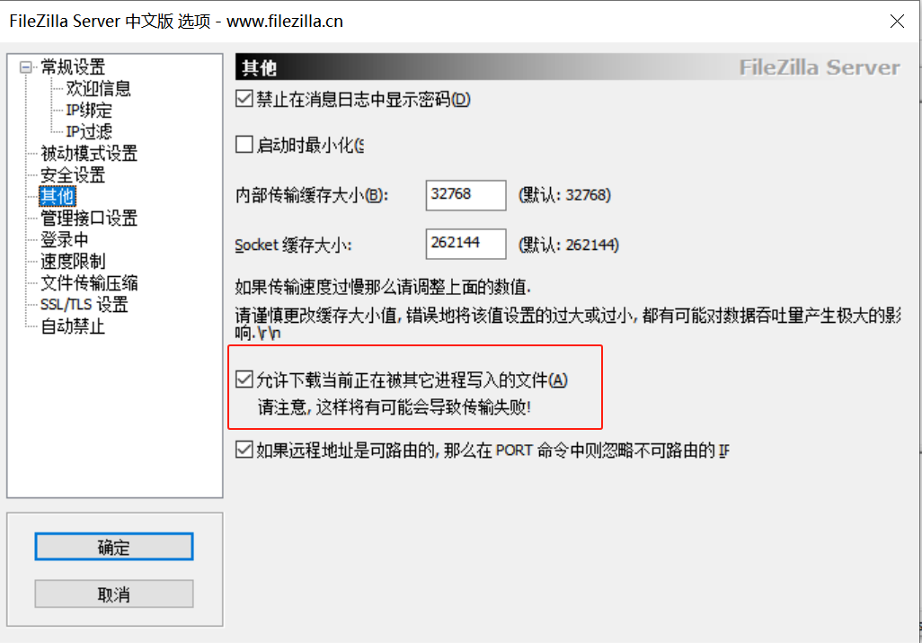 一、简介 实际需求是在前端修改了配置文件后,由上位机统一分发给所有设备,因为下位机支持FTP协议,因此选用FTP来实现文件传输功能。 二、准备工作1、FTP服务搭建FTP服务端选用FileZilla Server,免费开源,简单好用,可以下载中文版的。下载地址:下载 - FileZilla中文网,也可以直接从网盘拿: https://pan.baidu.com/s/1Rss5J2I-3kqzc1qD0CbOcg?pwd=aufr 提取码: aufr。 2、安装配置安装比较简单,略过不提,主要是有几个配置要注意下(附上参考文档,按照这里面的来基本不会有问题:用FileZilla搭建FTP服务器及相关问题 - Better - SegmentFault 思否): 编辑-设置-被动模式设置: