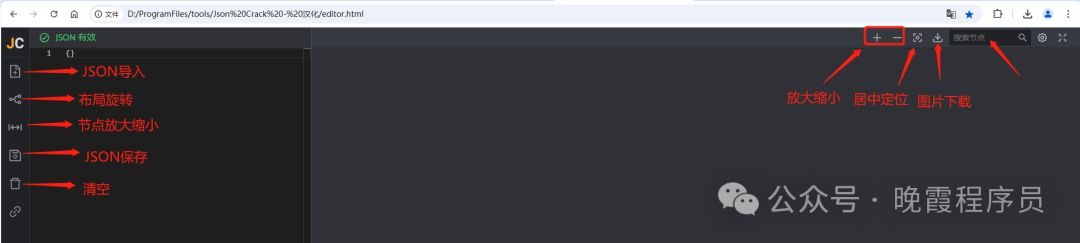05 — 功能介绍 拿到上面的ZIP包解压后打开里面的editor.html就行,里面有个自带的JSON可以体验。为了方便可以创建一个快捷方式到桌面(或开始菜单),后续就可以直接使用了。