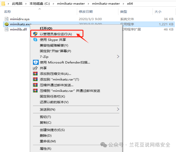3.以管理身份运行mimikatz.exe