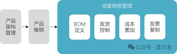 业务场景 某些特定的产品具有相对固定的销售组合,如台式电脑的销售组合包括主机+显示器+键盘+鼠标等,其在生产时各组件会按库存进行生产(MTS),销售时需要在仓库(不是车间)完成出货组装或选配,这种销售模式称为成套销售模式。 如果装配工作需要在车间依据生产订单完成,则称为按订单装配(ATO- Assemble to Orde)。 注:存在将生产模式和销售模式概念混淆的情况,如“按库存销售“,实际上借用了按库存生产(MTO)的概念,这样定义销售模式并不严谨,MTO产生目标库存且以目标库存为计划驱动,” 按库存销售“是个伪概念,销售不以库存为目标也不以库存为驱动,销售模式的定义应基于销售方与客户需求之间的关系定义,而不是以与自身库存的关系来定义。 成套销售管理需要解决的几个问题: BOM定义:成套产品的BOM结构定义:通过SBOM定义所销售产品母件与子件之间的构成关系。 发货控制:发货时只针对子件而不是母件(因为生产环节不产生母件,母件没有对应库存数据)。 成本累加:将子件成本累加到母件上。 发票复制:自动实现发货成本到发票的数据复制。 上述分析还只是针对销售处理环节,如扩展到整个企业,所需的管理支持还包括: 产品架构管理:面向市场客户定义产品型谱架构,各型谱所包含的组件配置。 产品推销:在营销推销环节,须以产品型谱数据为基础,完成客户订单信息的确定。