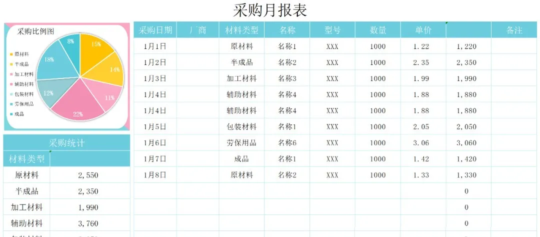 [点晴模切ERP]采购必备的采购订单,月报表、统计表模板