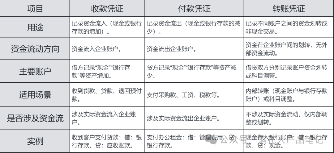 收款凭证、付款凭证、转账凭证,适用于规模较大、工作量较大、收付款业务较多的单位。