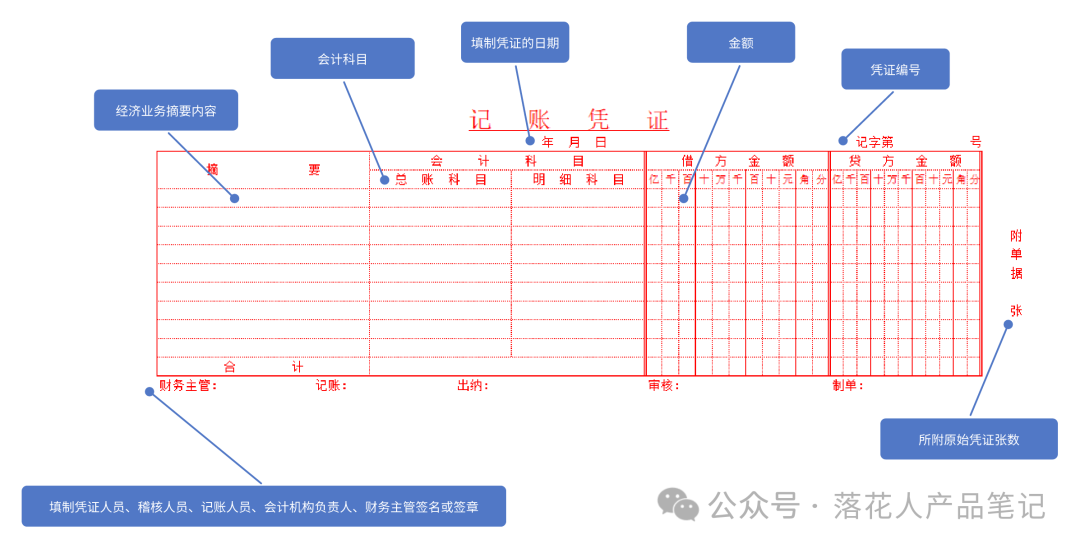 制单人、审核人和记账人:由相关责任人签字或盖章,明确责任。