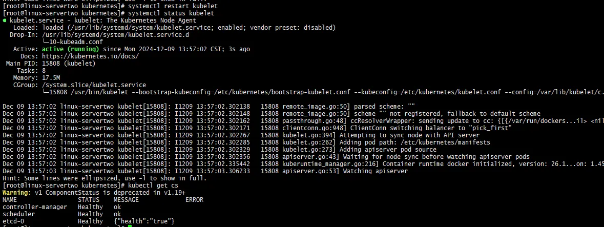 [root@linux-servertwo kubernetes]# kubectl get pods -n kubernetes-dashboard
