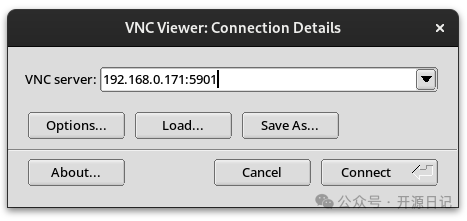 用 vncviewer 输入 IP 地址,连接远程桌面