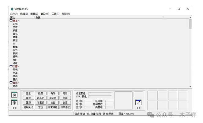 ✅ 查看窗口信息:句柄、类名、标题、样式……比Spy++更直观。  ✅ 操控窗口状态:隐藏、置顶、关闭、强制终止进程,甚至能“复活”灰色按钮。  ✅ 修改窗口样式:调整大小、隐藏标题栏、禁止最大化……(不过只在内存中生效)。  ✅ 查找隐藏窗口:连被容器控件屏蔽的特殊窗口都能揪出来。  ✅ 取色器 & 窗口监视:还能顺便抓取屏幕颜色,监视窗口创建/销毁。