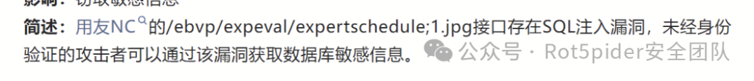 时,后端代码未对输入进行有效过滤,导致攻击者可构造恶意SQL语句实现任意数据查询。 下图为用友NC漏洞预警(发现24年的老洞了(资产几乎打补丁了),闲着没事分析下)