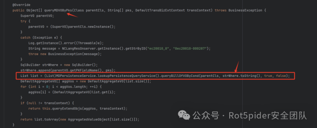 故DefaultQueryServiceImpl 类大概率定义了queryMDVOByPks方法,如下