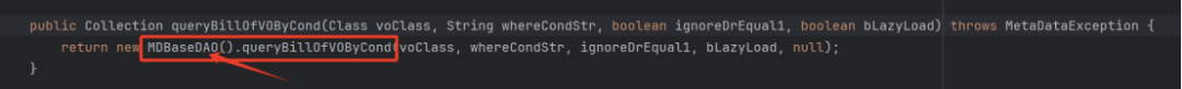 到MDPersistenceService类中去找queryBillOfVOByCond方法,可以看到return到MDBaseDAO对象的queryBillOfVOByCond方法