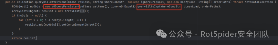 跟进MDBaseDAO对象的queryBillOfVOByCond方法,new了一个VOQueryPersister对象调用queryBillsImp方法