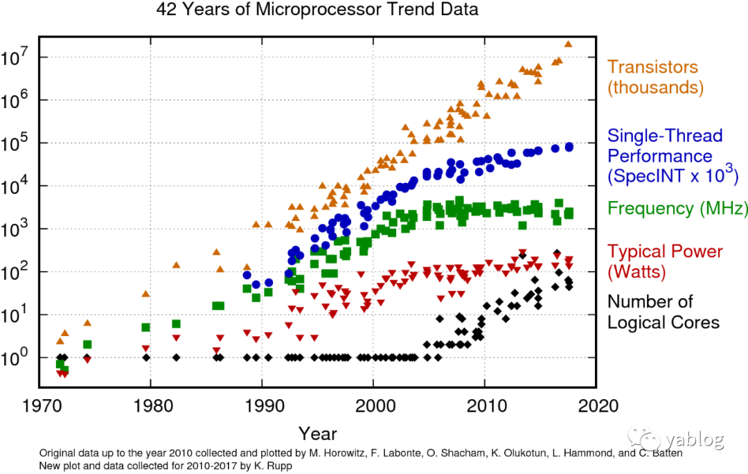 图3 1970-2018 CPU 性能变化历史 - https://www.karlrupp.net/