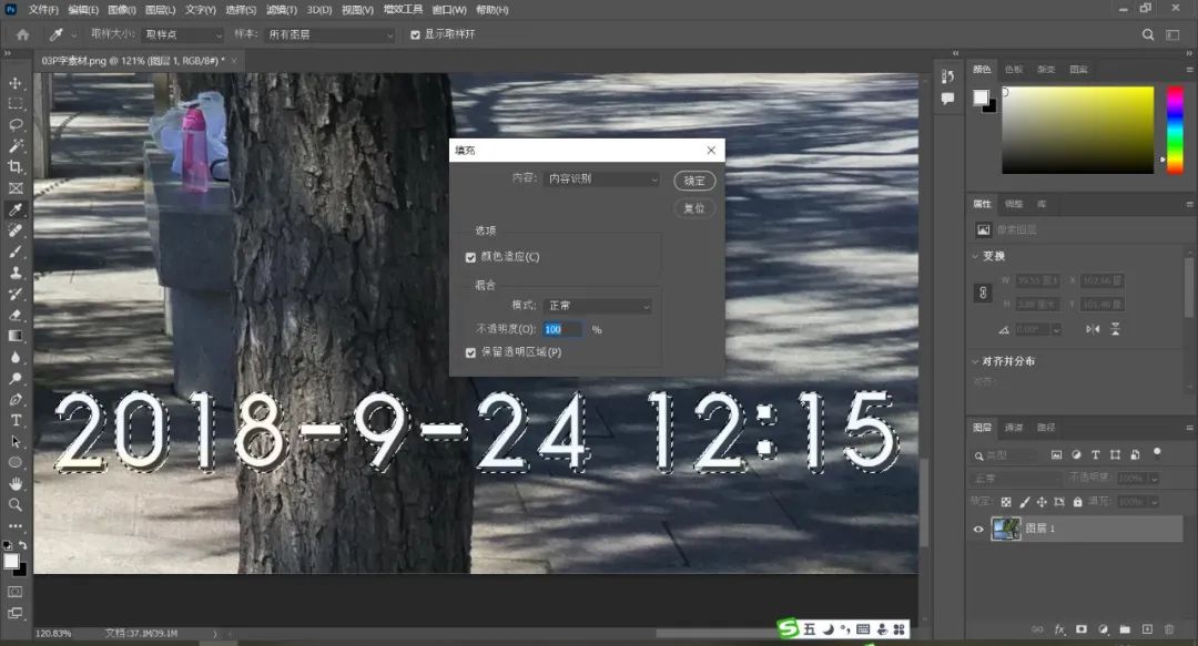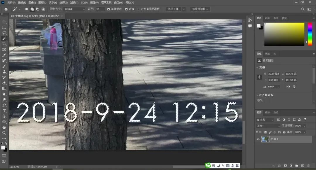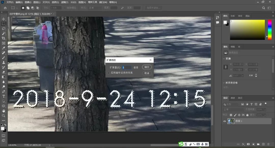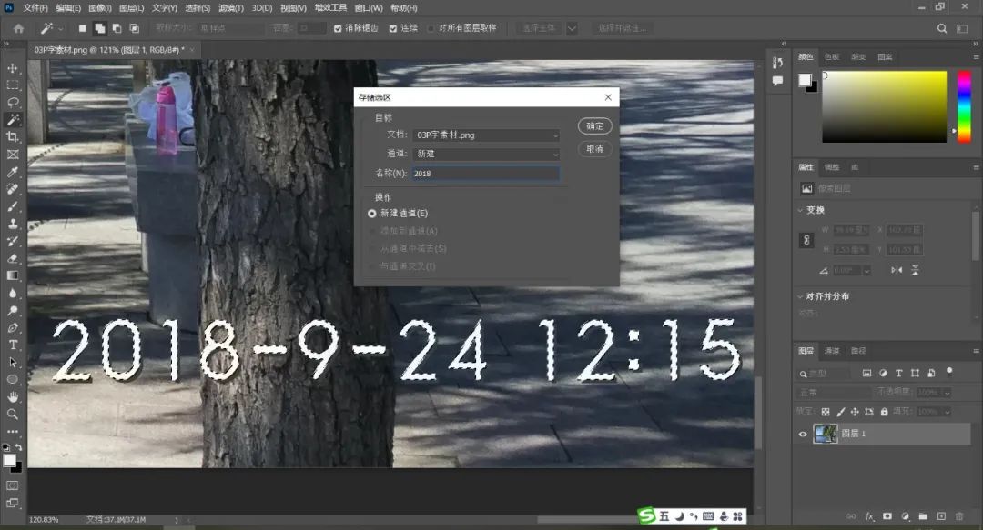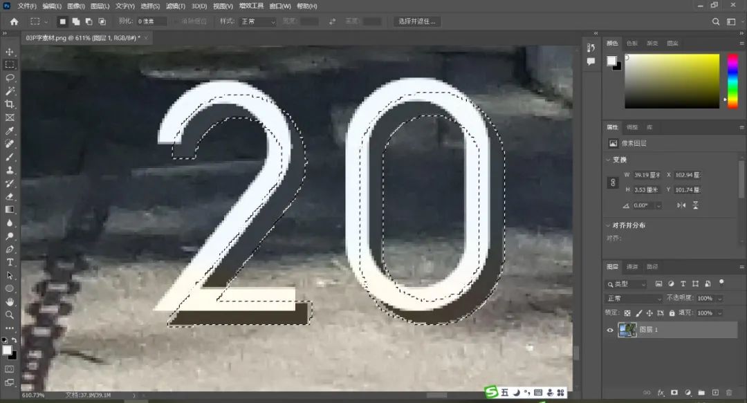 确定后新的选区就把文字水印和阴影都包括进去了。