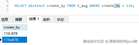 SELECT distinct create_by FROM t_message WHERE CONVERT(create_by, SIGNED) = 116;