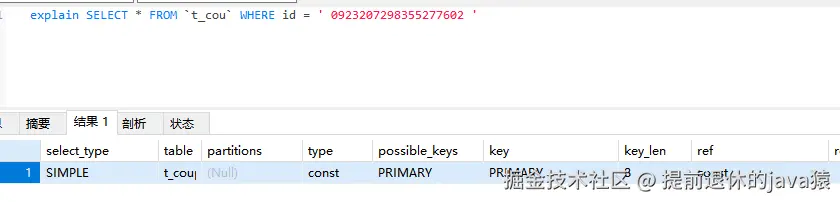 当然不是🏍,请看下面ID是bigint,并且执行执行计划是 使用了主键索引的