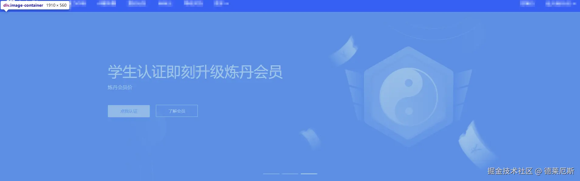 它的宽度只有 1440,且 background-size 设置的是 contain ,即等比例缩放,那么可以断定它两边的蓝色是依靠背景色填充的。