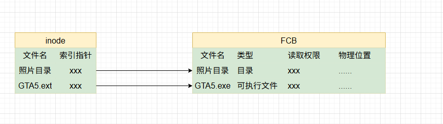 目录本身就是一种有结构的文件,由一条一条记录组成。这个记录叫做File Control Block,FCB。
