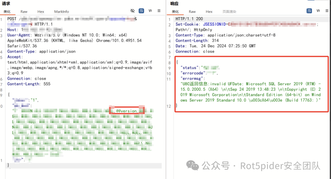 引 言 此漏洞未公开未公开漏洞 xxx云平台存在未授权SQL注入漏洞,攻击者可通过构造恶意JSON请求实现数据库版本信息泄露,进而可能获取服务器控制权限。 上述json参数添加完即可进入if判断 阅读原文:https://mp.weixin.qq.com/s/4VTQDvxuW5hqFZ_j3zhxCA 点晴模切ERP更多信息:http://moqie.clicksun.cn,联系电话:4001861886 该文章在 2025/4/18 11:37:50 编辑过 |