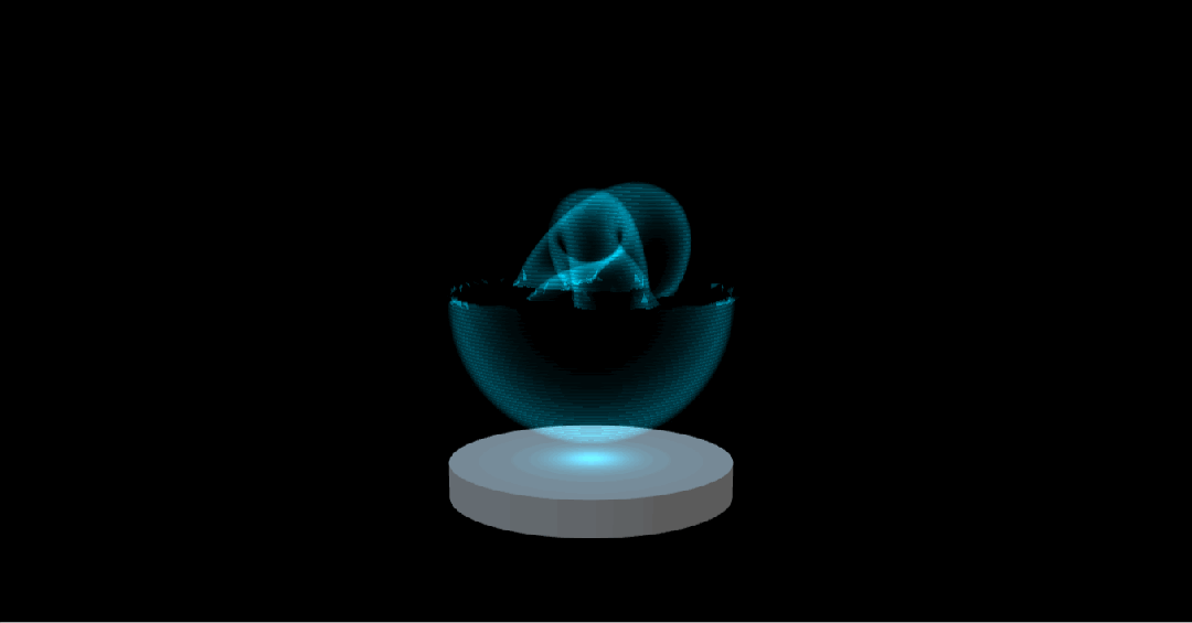 “使用 Three.js 的 WebGL 小实验。Three.js 全息影像效果,动画化模型进行过渡效果。”