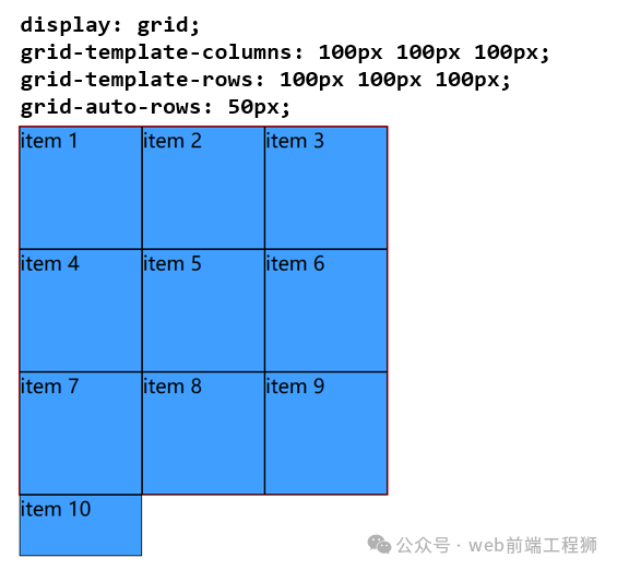 1. grid-template-columns / grid-template-rows:定义每一行的(显式)列宽 / 行高
