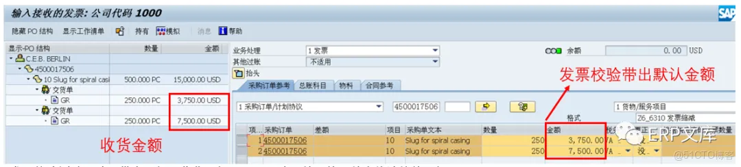 业务需求: 在SAP项目实施中采购管理模块最常遇到业务需求之一:采购订单收货后不能在修改价格,如果要修改价格必须冲销收货或拆行(已收货的不能修改价格,未收货的数量通过插上一行项目来修改价格)。 需求的业务背景: 这业务需求一般是财务部门要求,为何财务部门要求这样的业务控制,主要有2个方面原因,第一个原因是如果收货后再对订单价格进行修改的话,会影响到一些与采购相关的财务对帐报表,因为这些报表是取采购订单当前实时价格进行对账的,第二个原因和公司财务的一些结算规则和要求相关,要理解这需要先了解下SAP定价策略和发票校验之间的关系,SAP的标准功能中采购定价可以按凭证日期定价也可以按收货日期定价,具体设置在采购信息记录中设置(如下图)。 如果按凭证日期定价,那么在用MIR7/MIRO做发票预制/正式发票时候,自动带出默认金额是按采购订单上的最新价格计算的,如果是收货日期定价,自动带出默认金额是按收货时计算的金额(具体见如下说明)。 1.按采购订单凭证日期定价 对这采购订单分2批次进行收货,第一次收货,数量250,采购净价18,然后将采购订单净价修改36,第二次收货,数量250,净价36 ,然后做发票校验。