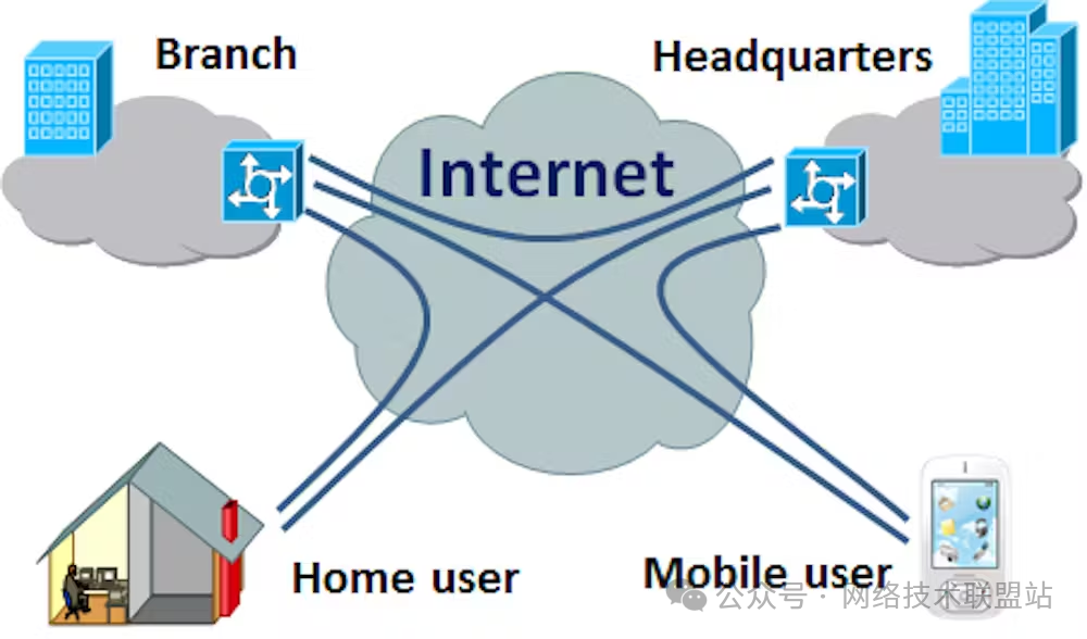 • 成本低:利用现有互联网,不用花大价钱租专线。